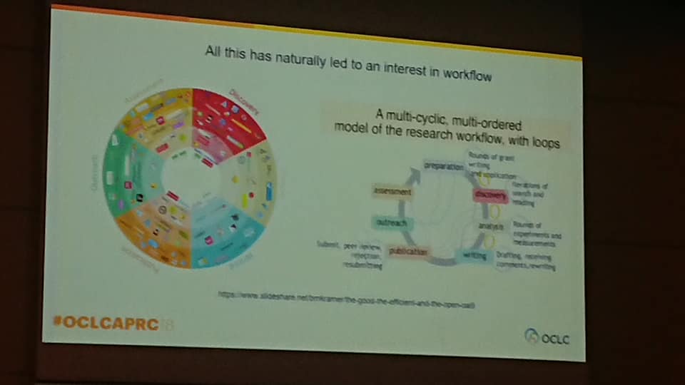Speaker 2 (Titia van der Werf) ได้กล่าวถึงเรื่องบทบาทของ OCLC Research ว่าเป็นหน่วยงานที่ตั้งขึ้นมาเพื่อศึกษาเรื่องใหม่ๆ ในวงการ เช่น การใช้สื่อสังคมออนไลน์ การเผยแพร่ข้อมูลผ่านสื่อใหม่ๆ อีกเรื่องที่ถูกพูดถึงเยอะ คือ Lifelong Learning (Trend ในวงการศึกษา) ซึ่ง OCLC ก็ได้จัดทำคอร์สศึกษาระยะสั้นเพื่อให้เกิดการเรียนการสอนและออกใบประกาศนียบัตรได้